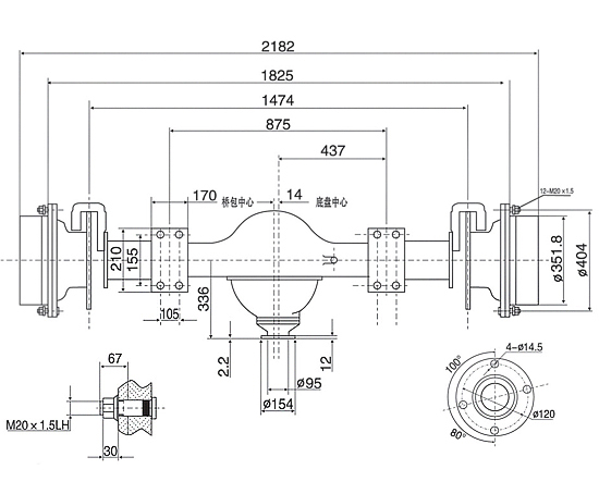 本廠驅(qū)動橋為剛性橋,位于傳東西的末端,采用兩級減速一級為主傳動螺旋傘齒輪減速,一級為輪邊行星齒輪減速,差速功能采用行星差速器,行車制動鉗盤式制動器。